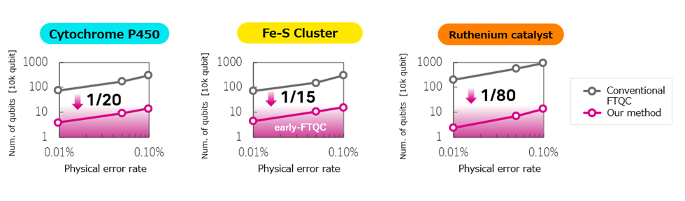To validate the effectiveness of these technologies, the researchers evaluated the number of qubits and computational time required for industrially applicable energy calculations for three distinct molecules: Cytochrome P450, an important oxidizing enzyme in drug discovery; Iron-sulfur clusters, catalytic proteins involved in ammonia synthesis and energy metabolism; and Ruthenium catalysts, a focus in synthetic chemistry. Accurate energy calculations for these molecules are currently infeasible with classical computers due to memory limitations. Even with the STAR architecture ver. 2, such computations would take several millennia and high precision calculations would be difficult to achieve due to the scale of the calculation. The results of this validation primarily demonstrate that the STAR architecture ver. 3 reduces the number of qubits necessary to perform the calculations to between 1/15 and 1/80 of conventional FTQC architectures. Furthermore, the partners confirmed that calculations are feasible on early-FTQC quantum computers even with a lowered physical error rate requirement for qubits, from the previous 0.01% to 0.10%.